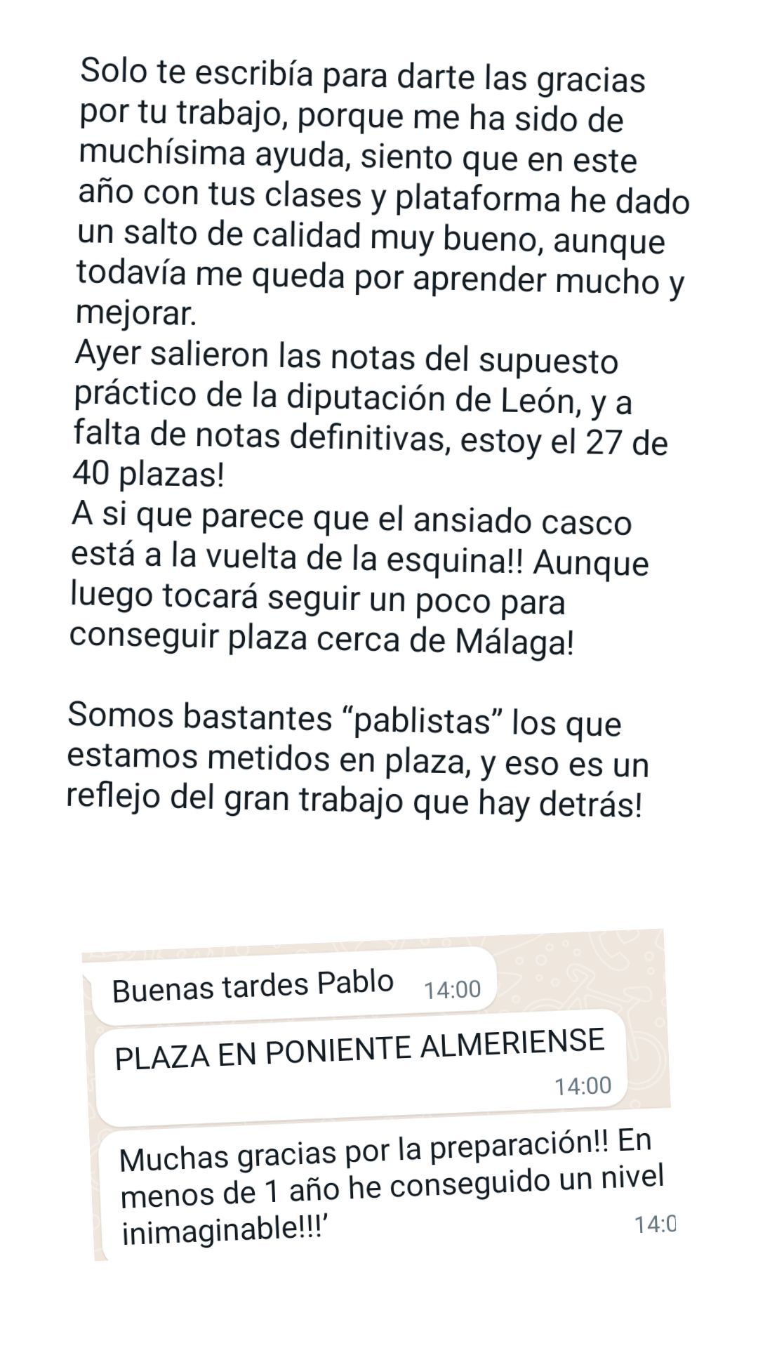 Ex alumno y Bombero del Consorcio del Poniente Almeriense (1º de su promoción)"Para mi las clases de Pablo y su plataforma te aseguran el nivel necesario para aprobar cualquier oposición. Sólo me arrepiento de no haber empezado con él antes".